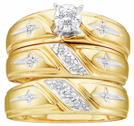 Buy Men's Ladies 10K Yellow Gold .15CT Round Cut Diamond Wedding Engagement Bridal Trio Ring Set (ladies size 7, men size 10)Men's Ladies 10K Yellow Gold .15CT Round Cut Diamond Wedding Engagement Bridal Trio Ring Set (ladies size 7, men size 10) Product Description: