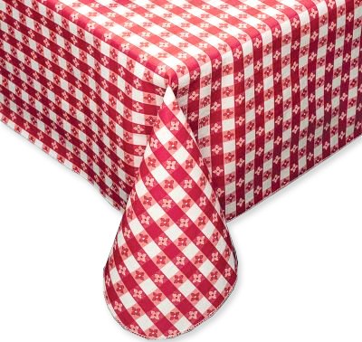 - Includes: 15 Yard Roll of Tavern Check Vinyl Tablecloth in Red & White (54 inches wide)