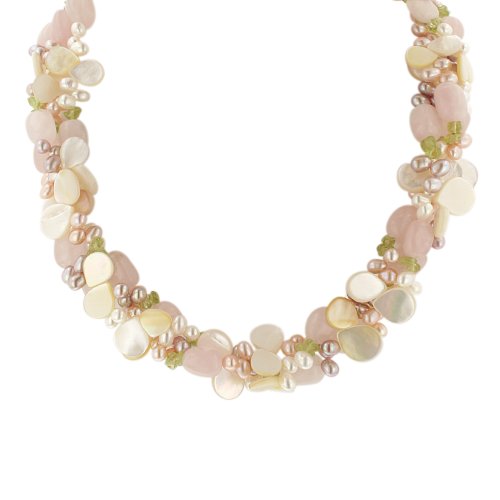 3-Row Rose Quartz, Peridot, White Mother-Of-Pearl, and Multi-Color Freshwater Cultured Pearl Necklace with Sterling Silver Clasp, 17.5+3" Extender Product Description: